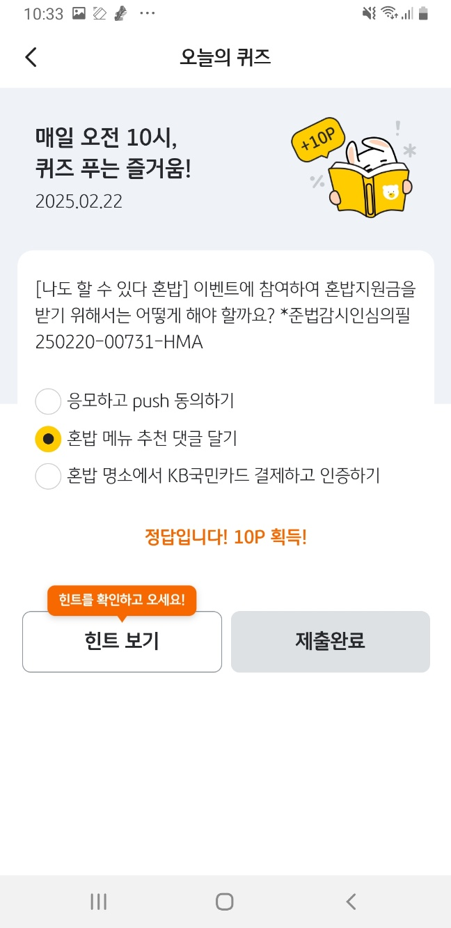 🎯 KB Pay 오늘의 퀴즈 2월 22일