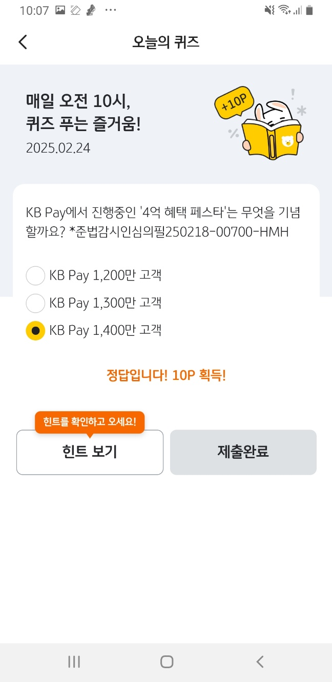 🎯 KB Pay 오늘의 퀴즈 2월 24일
