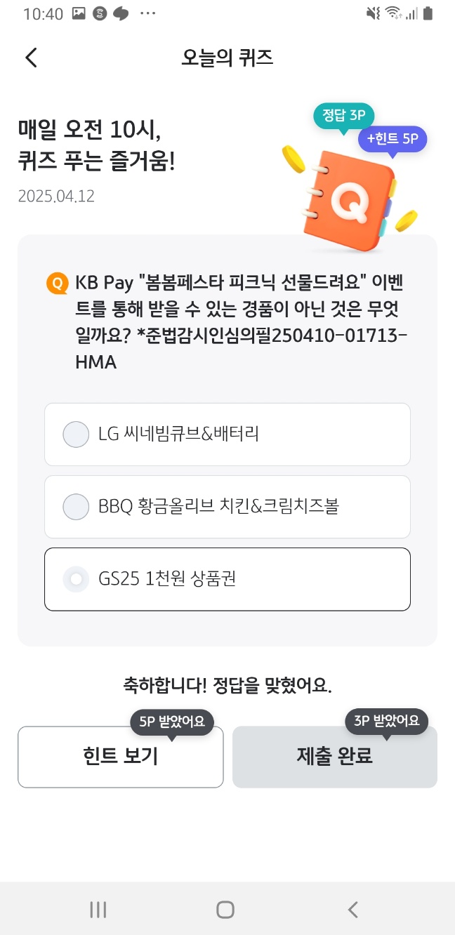 🎯 KB Pay 오늘의 퀴즈 4월 12일