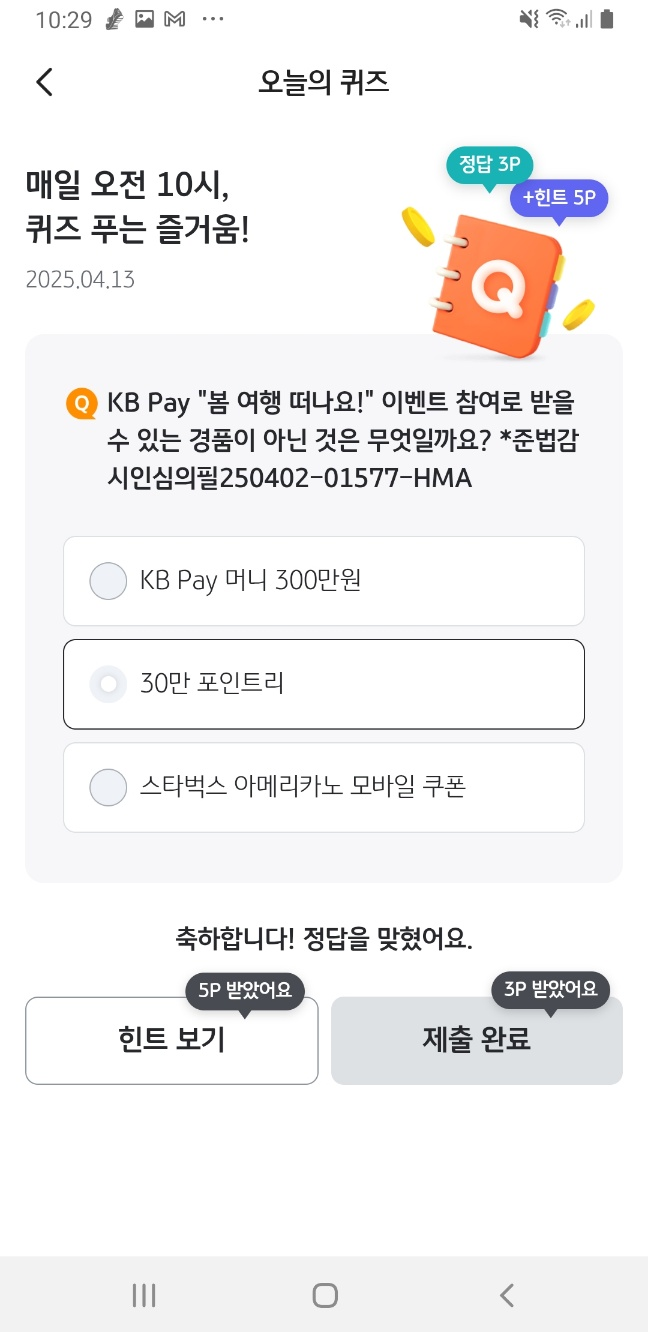 🎯 KB Pay 오늘의 퀴즈 4월 13일