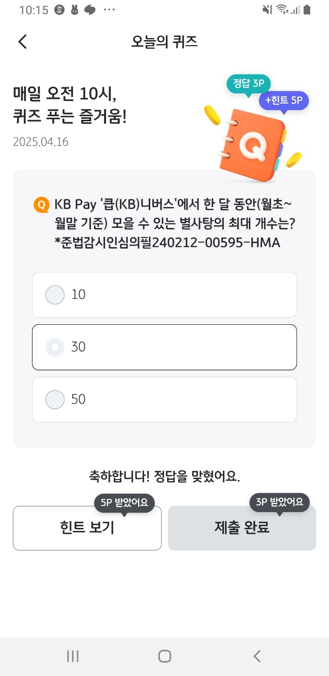 🎯 KB Pay 오늘의 퀴즈 4월 16일