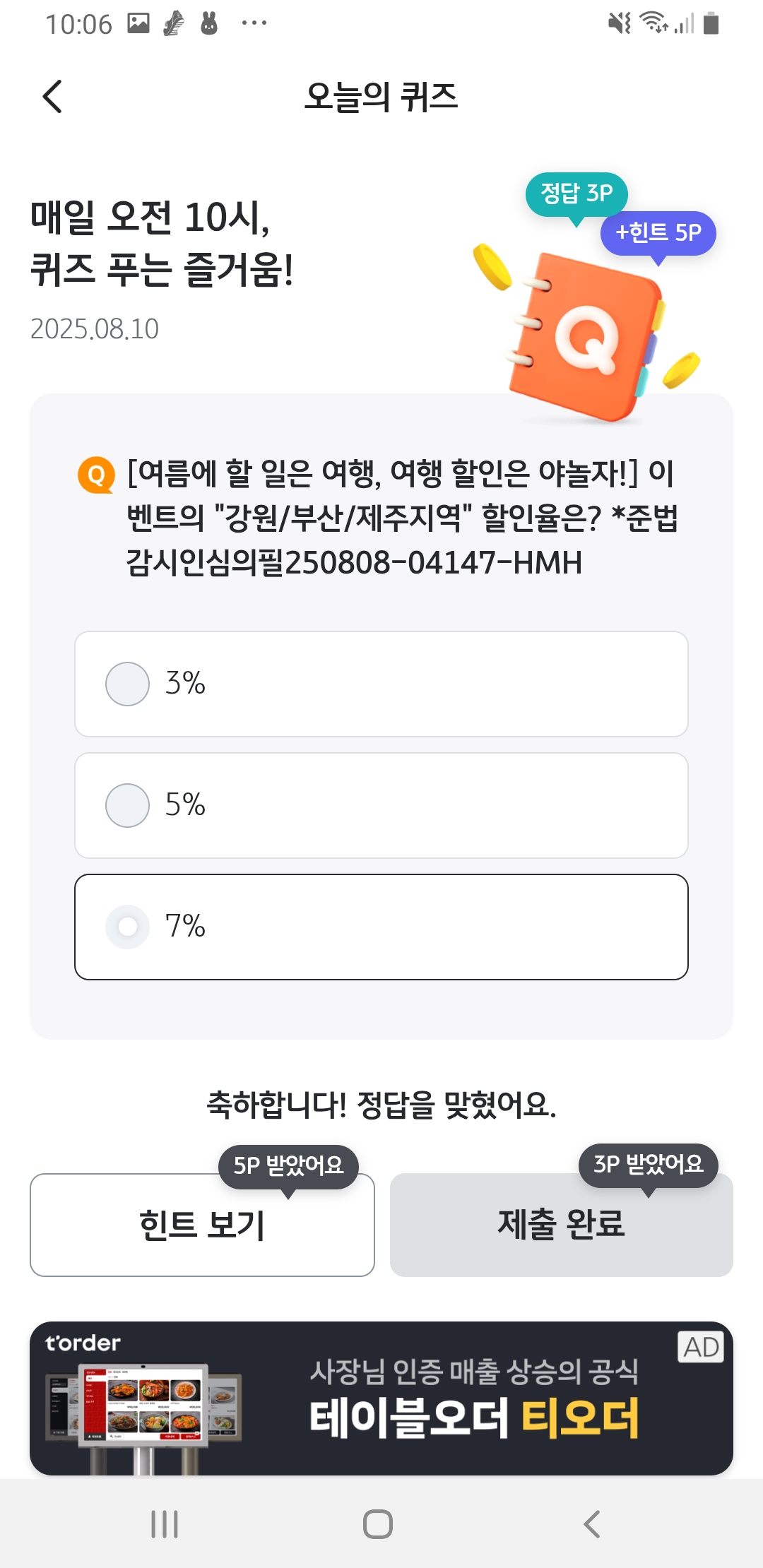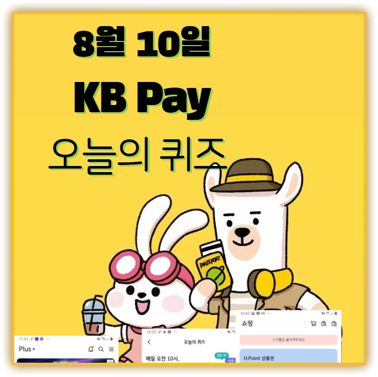 📖 KB Pay 오늘의 퀴즈 (8월 10일) | [여름에 할 일은 여행, 여행 할인은 야놀자!]이 이벤트의 강원/부산/제주지역 할인율은 몇 퍼센트일까요? ✈️🏖️