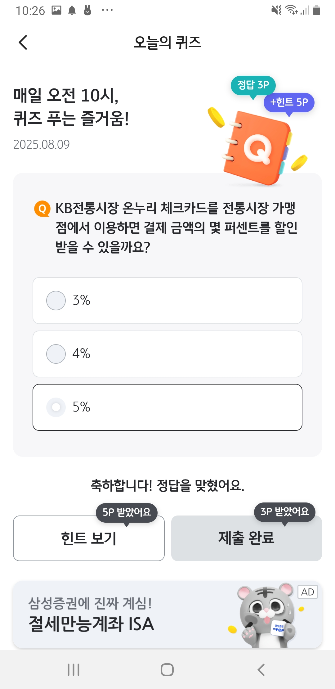 퀴즈로 출석 습관과 생활 혜택을 동시에 챙기세요.