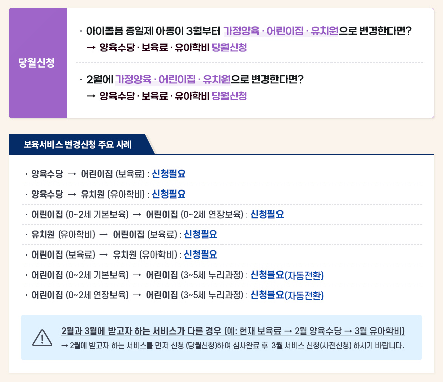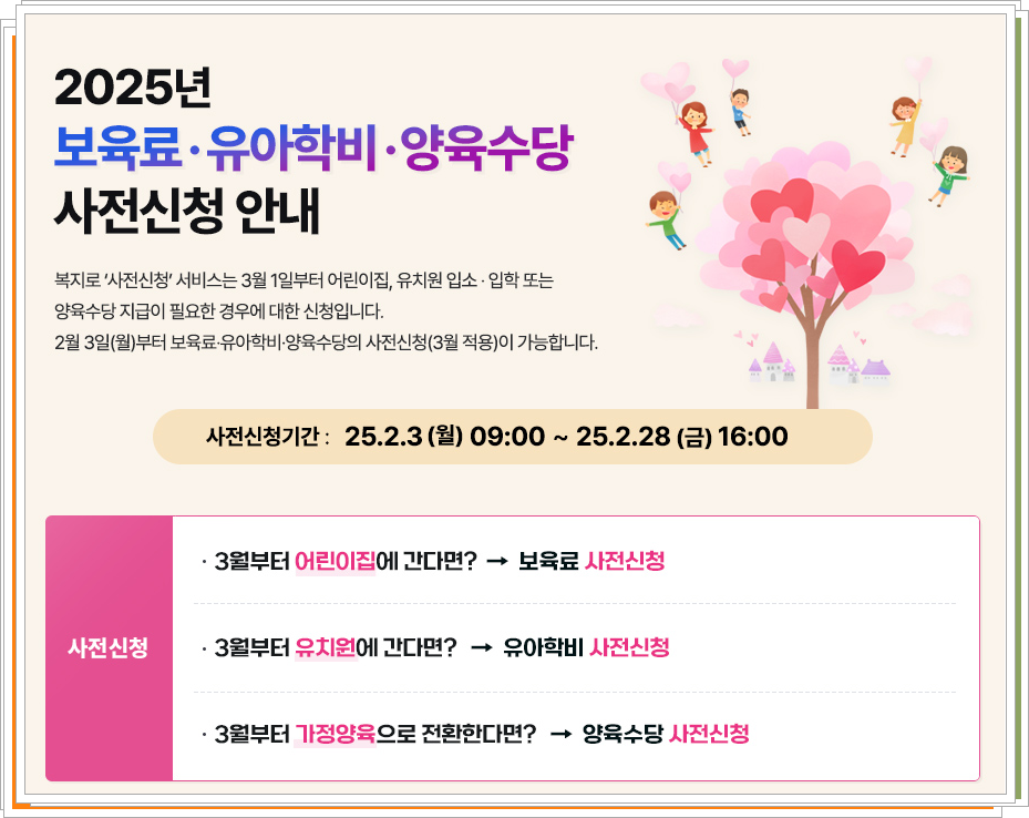 ✔ 3월 유치원 입학 예정자는 ‘유아학비 사전신청’으로 신청해야 함!