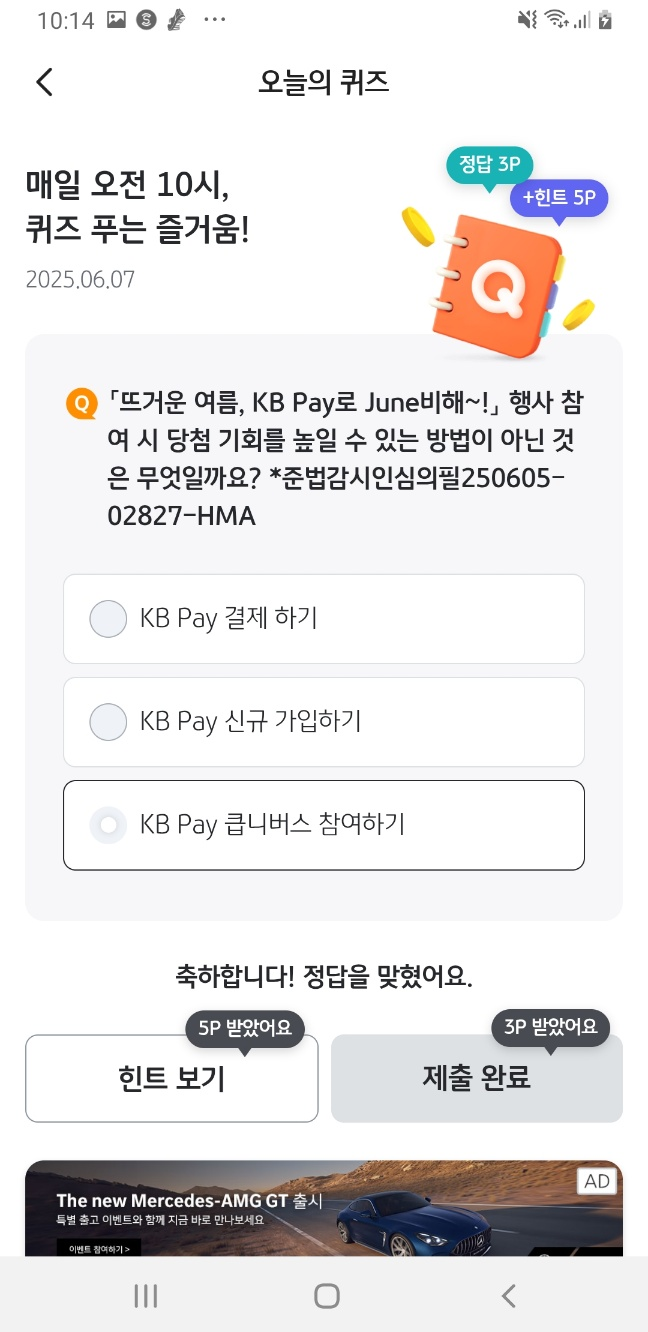정답: 3️⃣ KB Pay 클나버스 참여하기