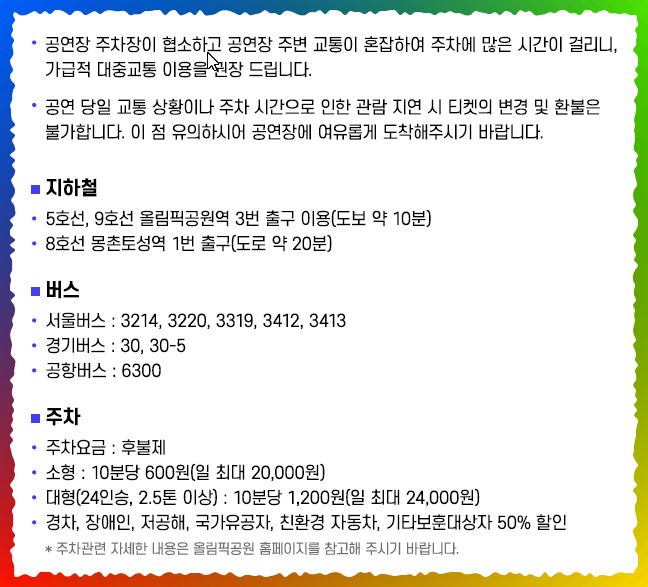 ✔ 휠체어석 예매: 인터파크 고객센터(☎1544-1555)에서 접수 가능