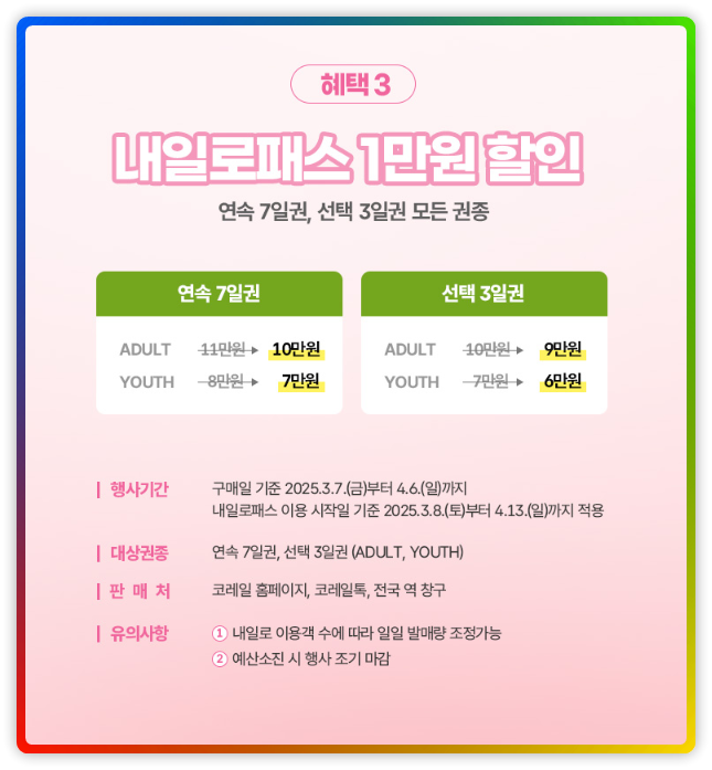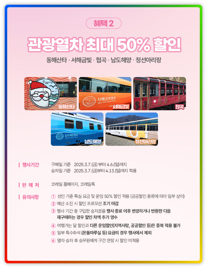 ⚠ 유의사항: 일부 열차 제외, 한정 좌석이므로 조기 마감 가능