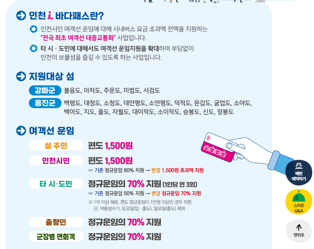 ✅ 인천시민은 단돈 1,500원(편도)으로 여객선 이용 가능