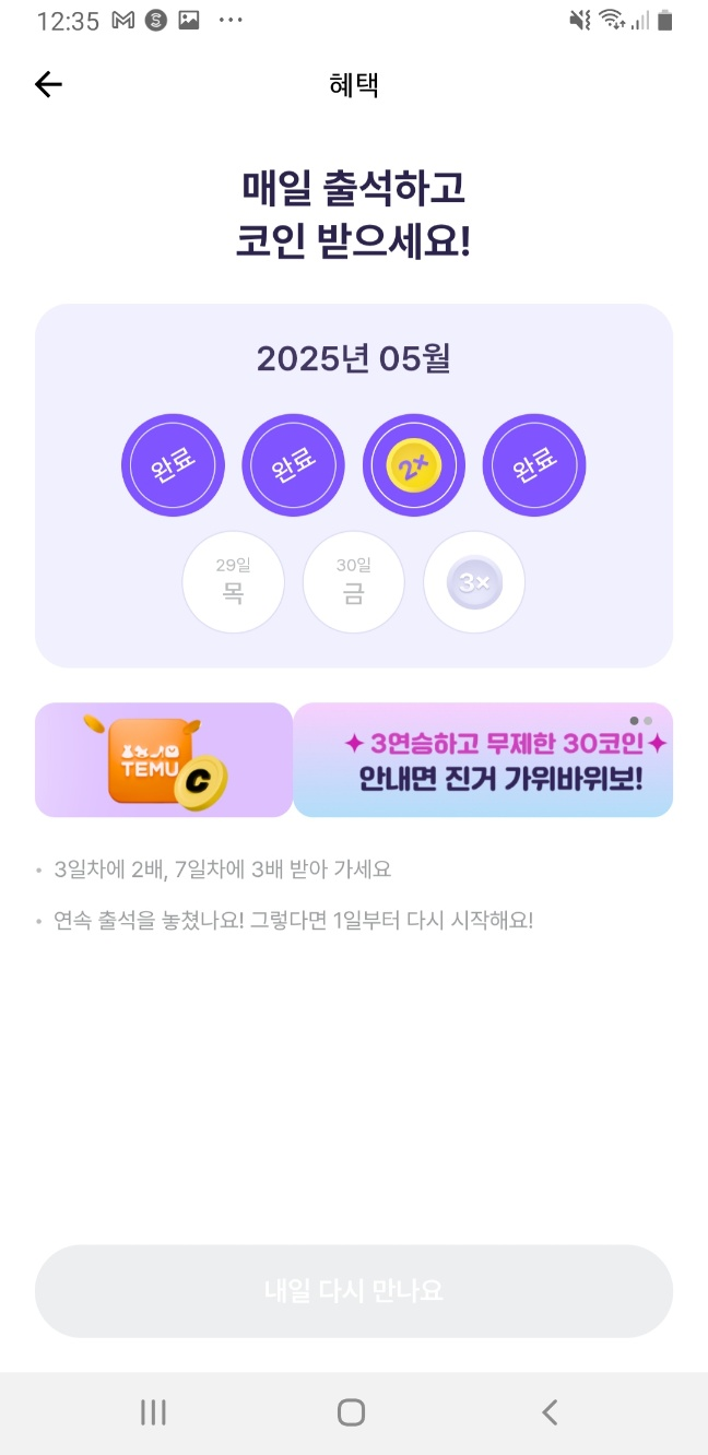 아침에 출석하고, 퀴즈 풀고, 저녁에 걷기 인증하면