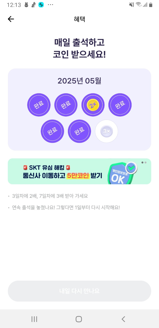 - 연속 출석 시 랜덤 곱배기 보너스까지! 🎁