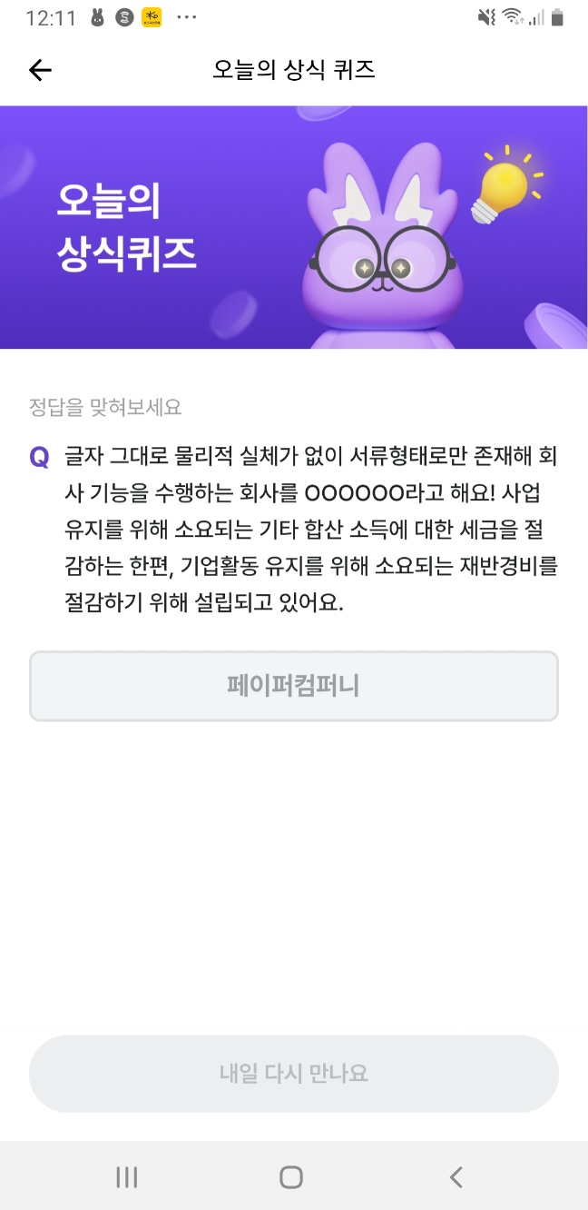 🎯 오늘의 정답은 페이퍼컴퍼니(Paper Company)입니다.