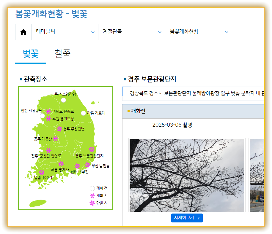 선정한 제목: "2025 벚꽃 개화 실시간 확인? 기상청 날씨누리 보는 법 총정리!"