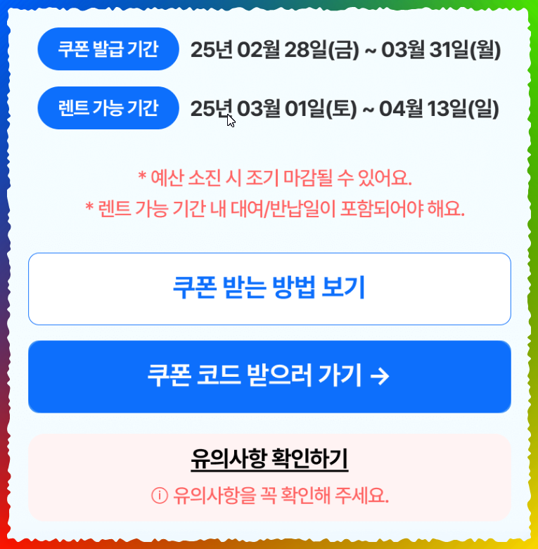 ✅ 렌터카 쿠폰 발급 기간: 2025년 2월 28일(금) ~ 3월 31일(월)