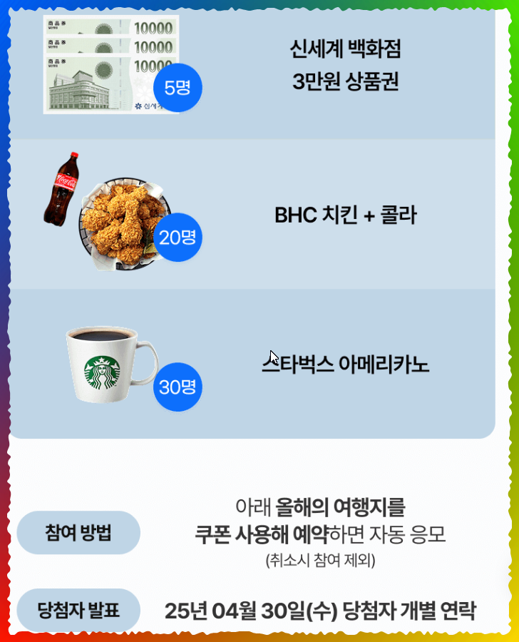 ✔ 경품 이벤트로 여행의 즐거움을 더하기!