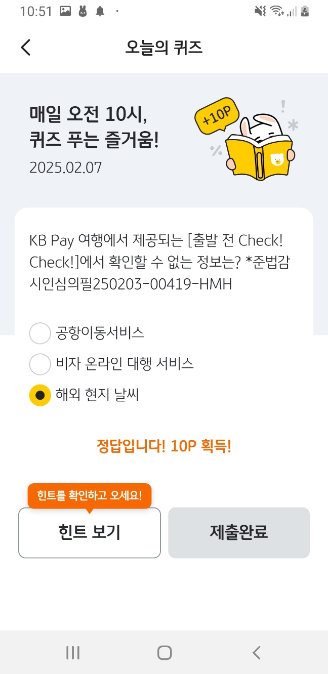 ✨ 오늘도 KB Pay와 함께 퀴즈 풀며 유용한 여행 정보도 배우고, 포인트도 챙기세요! 🚀